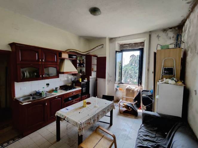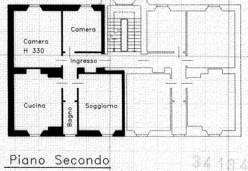 Appartamento trilocale di 97mq. sito al piano secondo, in stabile senza ascensore, così composto: Ingresso, cucina abitabile, bagno, soggiorno, due camere da letto. Completa il lotto un vano cantina al piano interrato e soffitta al piano quarto.