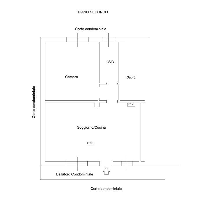Appartamento bilocale di 61mq, sito al secondo piano senza ascensore, così composto: ingresso su soggiorno con angolo cottura, disimpegno, bagno e camera.