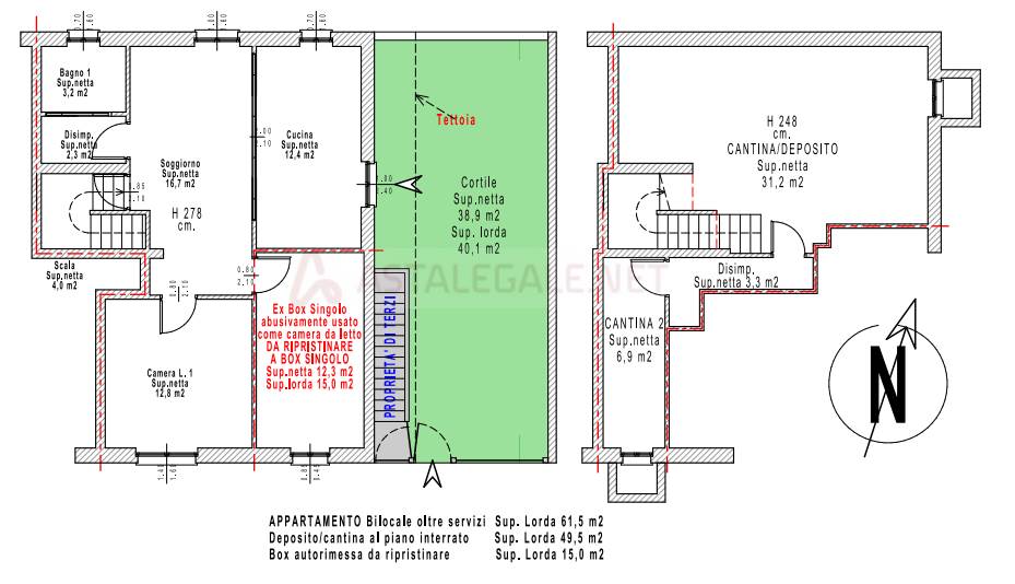 Appartamento bilocale di 76mq suddiviso su due livelli, sito al piano terra, così composto: ingresso indipendente su giardino di proprietà, cucina abitabile, soggiorno, bagno e camera da letto. Tramite scala interna si accede a tre vani cantinati destinati a deposito senza permanenza di persone.