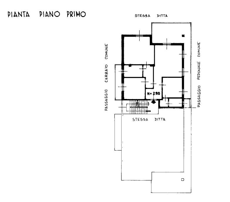 Appartamento trilocale di 82mq, sito al primo piano senza ascensore, così composto: ingresso su disimpegno, soggiorno, cucina, disimpegno, bagno, disimpegno, due camere di cui una con balcone e bagno.