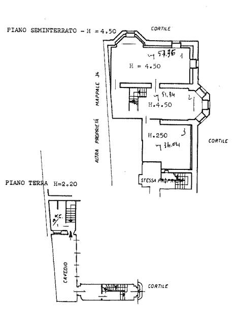 Ufficio trilocale di 181mq, sito a piano seminterrato senza ascensore, così composto: ingresso a piano terra su disimpegno, bagno.