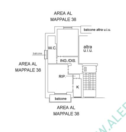Appartamento bilocale di 67mq, sito in stabile senza ascensore, così composto: ingresso su disimpegno, soggiorno con balcone, cucina, ripostiglio, bagno con balcone e camera.