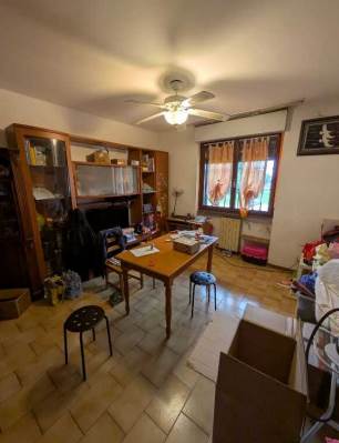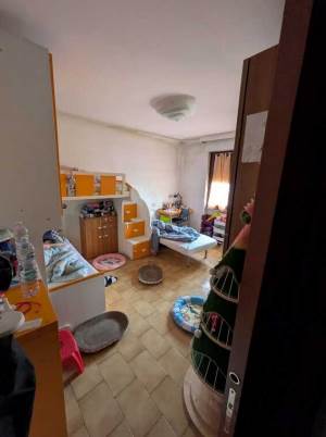 Appartamento trilocale di 90mq, sito al piano rialzato senza ascensore, composto da ingresso su ampio locale soggiorno, cucina e due camere, oltre bagno e ampio corridoio di disimpegno con ripostiglio.