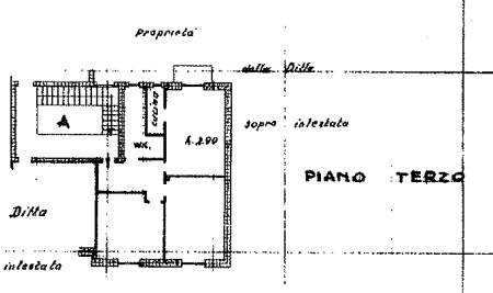 Appartamento trilocale di 67mq, sito al terzo piano con ascensore, composto da ingresso su disimpegno, soggiorno con cucinotto, balcone, bagno e due camere da letto.