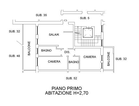 Appartamento trilocale di 75mq sito al piano primo con ascensore, composto da ingresso su soggiorno con angolo cottura, due bagni, due camere da letto e due balconi.