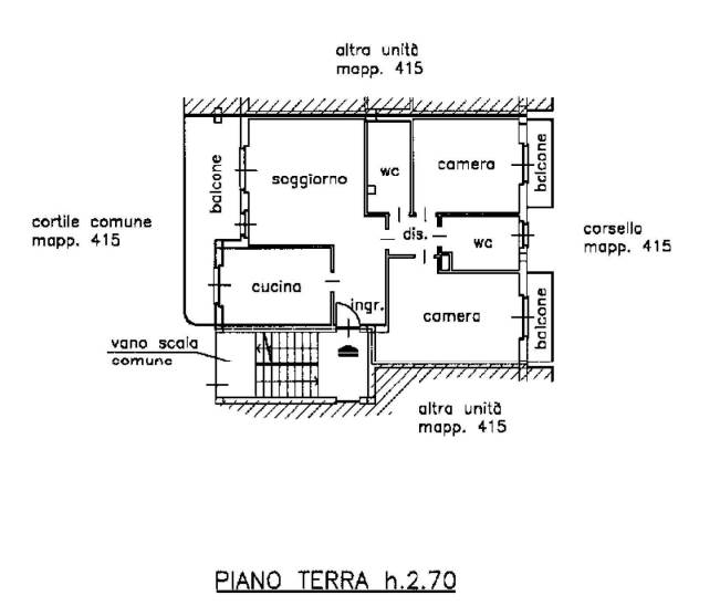 Appartamento Trilocale di 105mq. posto al piano rialzato, così composto: Ingresso, cucina, soggiorno, disimpegno, due camere da letto, due bagni e tre balconi. Completa il lotto un Box doppio di 25mq. al piano interrato.