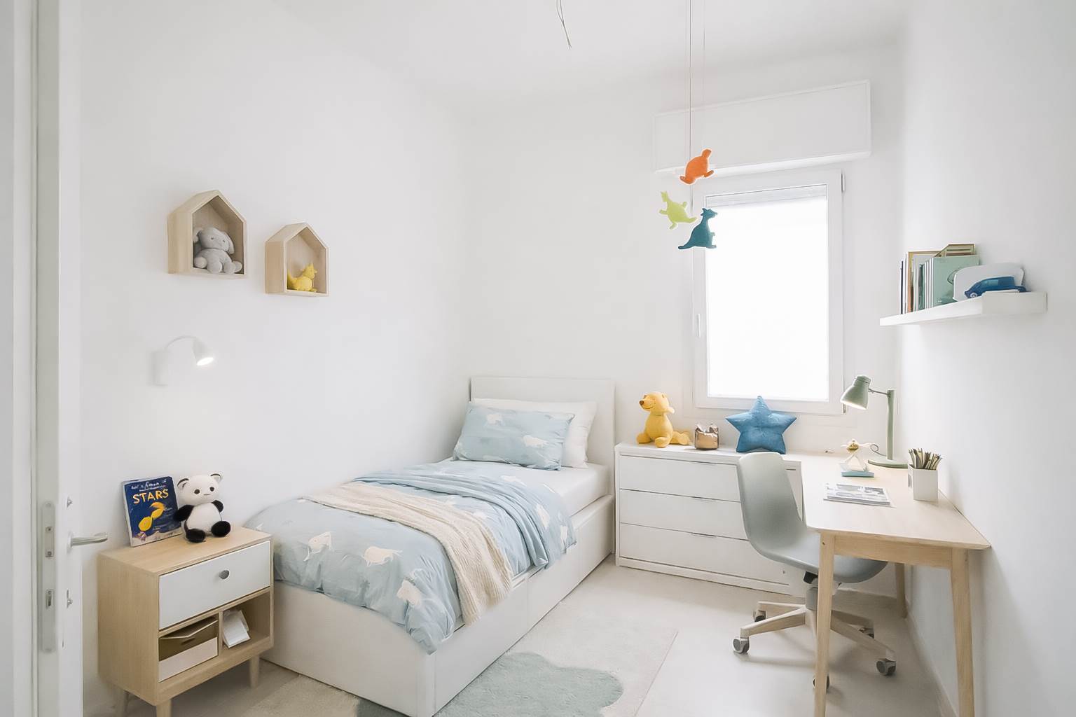 La zona notte comprende una camera matrimoniale, una seconda stanza utilizzabile come cameretta o studio, ideale anche per chi lavora da casa, e un bagno completamente rinnovato.