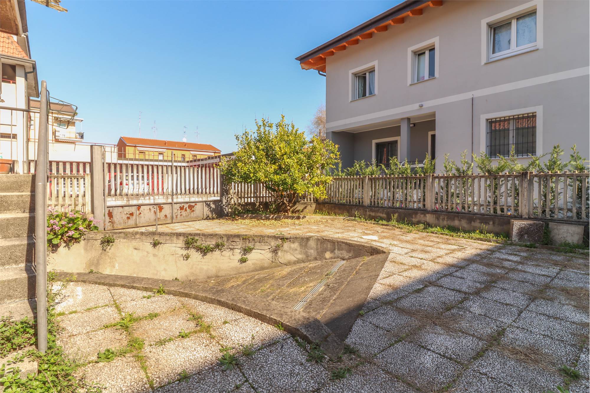 Completa la proprietà un grande giardino privato che circonda la casa garantendo privacy e uno sfogo esterno nel verde.