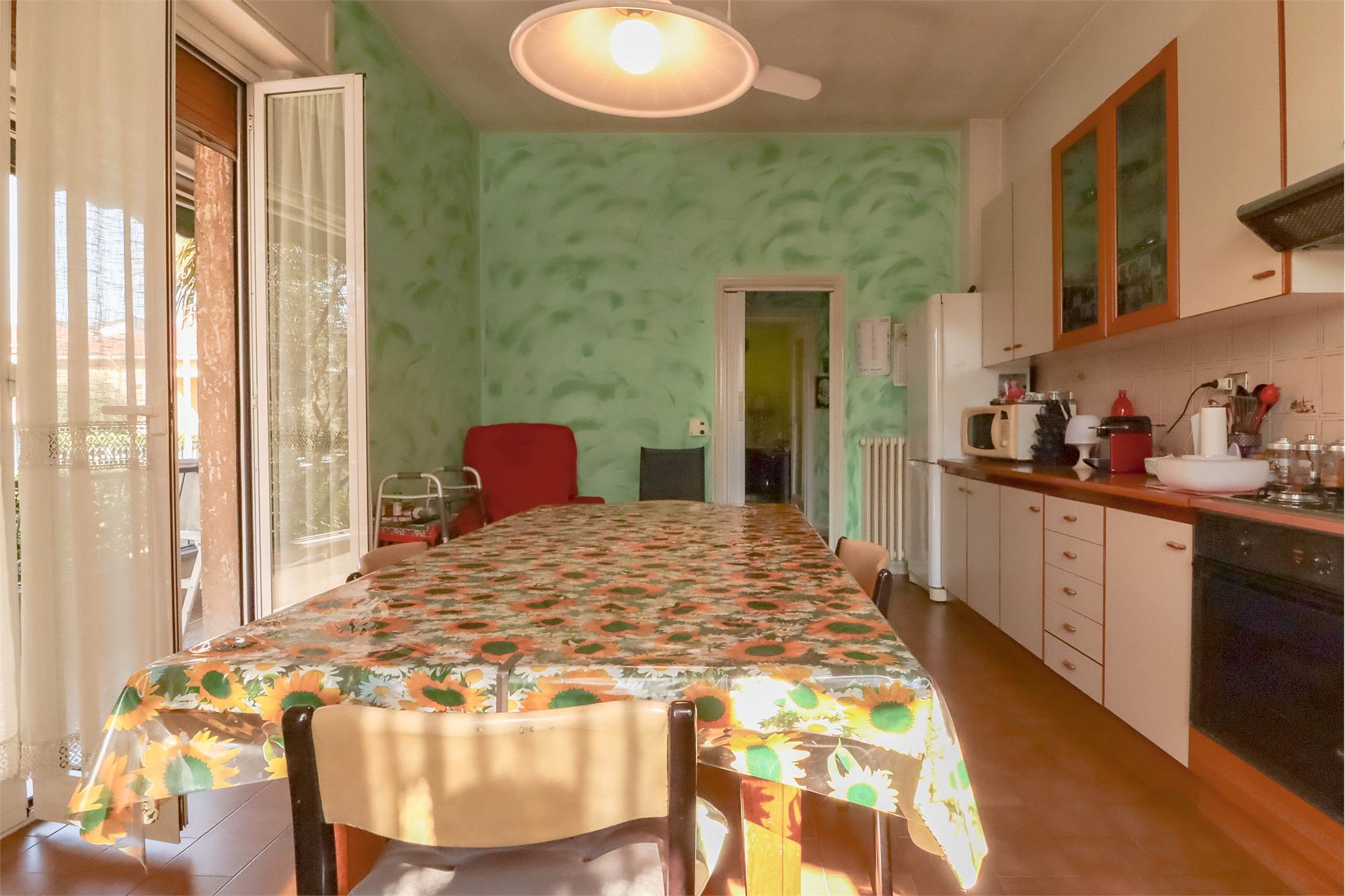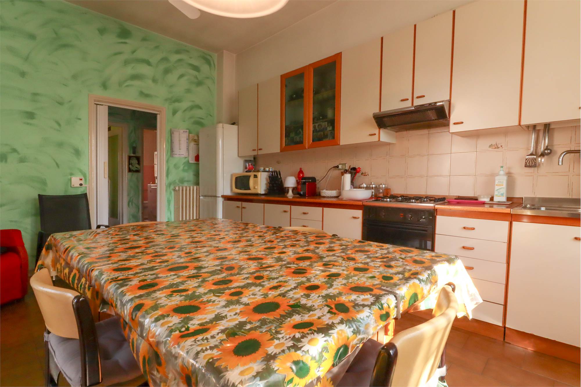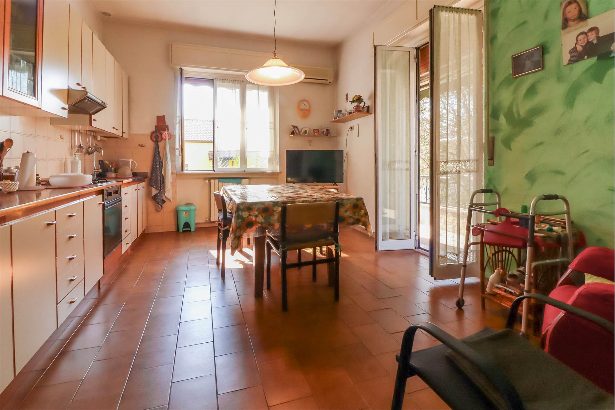 - Al piano rialzato l'ingresso su un ampio disimpegno che collega alla grande cucina abitabile con accesso al balcone, un comodo soggiorno, due ampie camere da letto, un bagno e un pratico ripostiglio.